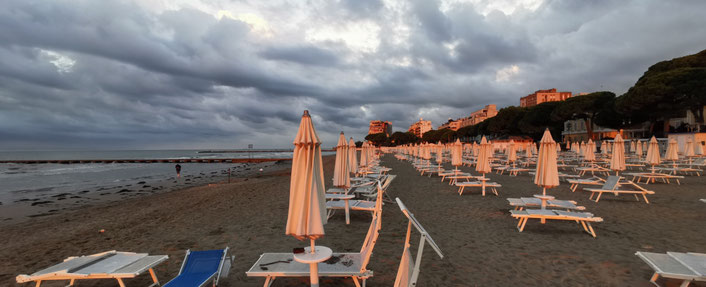 „Am Strand liegen“, also inmitten der Massen ging gar nicht, da der Melzer, ebenso wie die beiden entzückenden Katzen der Nachbarin, ein „Fluchttier“ war. In einer der zahlreichen Strandbars Platz nehmen kam schon vor, aber auch dort, wo die breiten Wege wieder retour auf die Promenade und zum sicheren Ausgang führten.